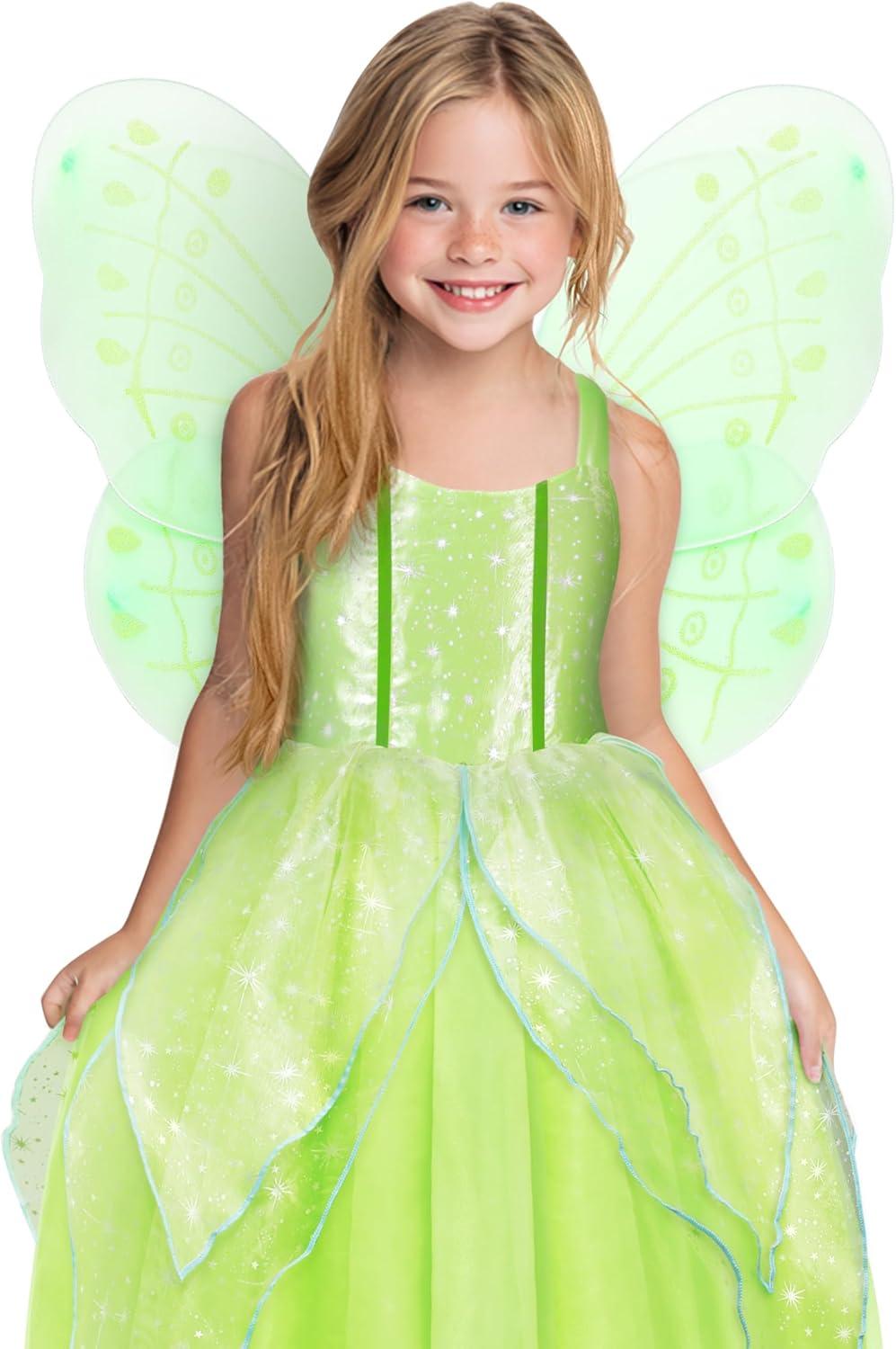 Light Up Girls Halloween Costume Toddler Fairy Dress & Wings Green Fairy Girls Costume Princess Ball Gown Kids(Green)