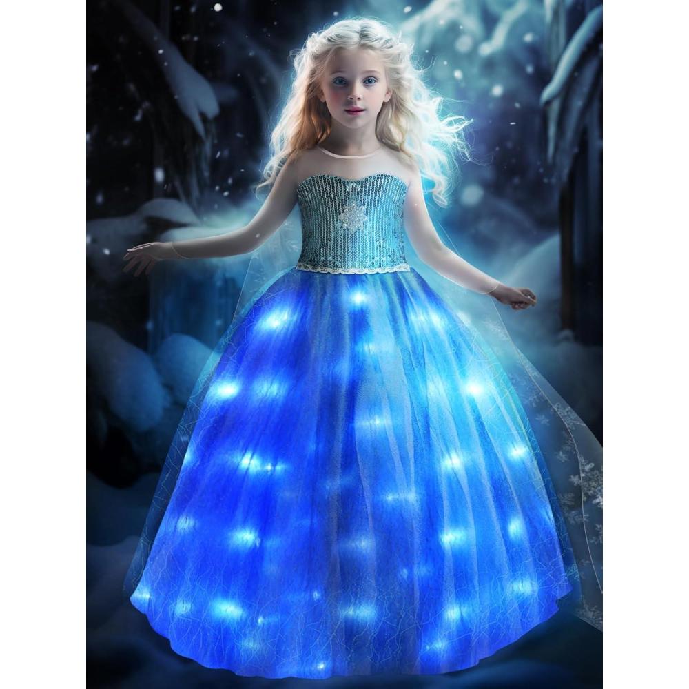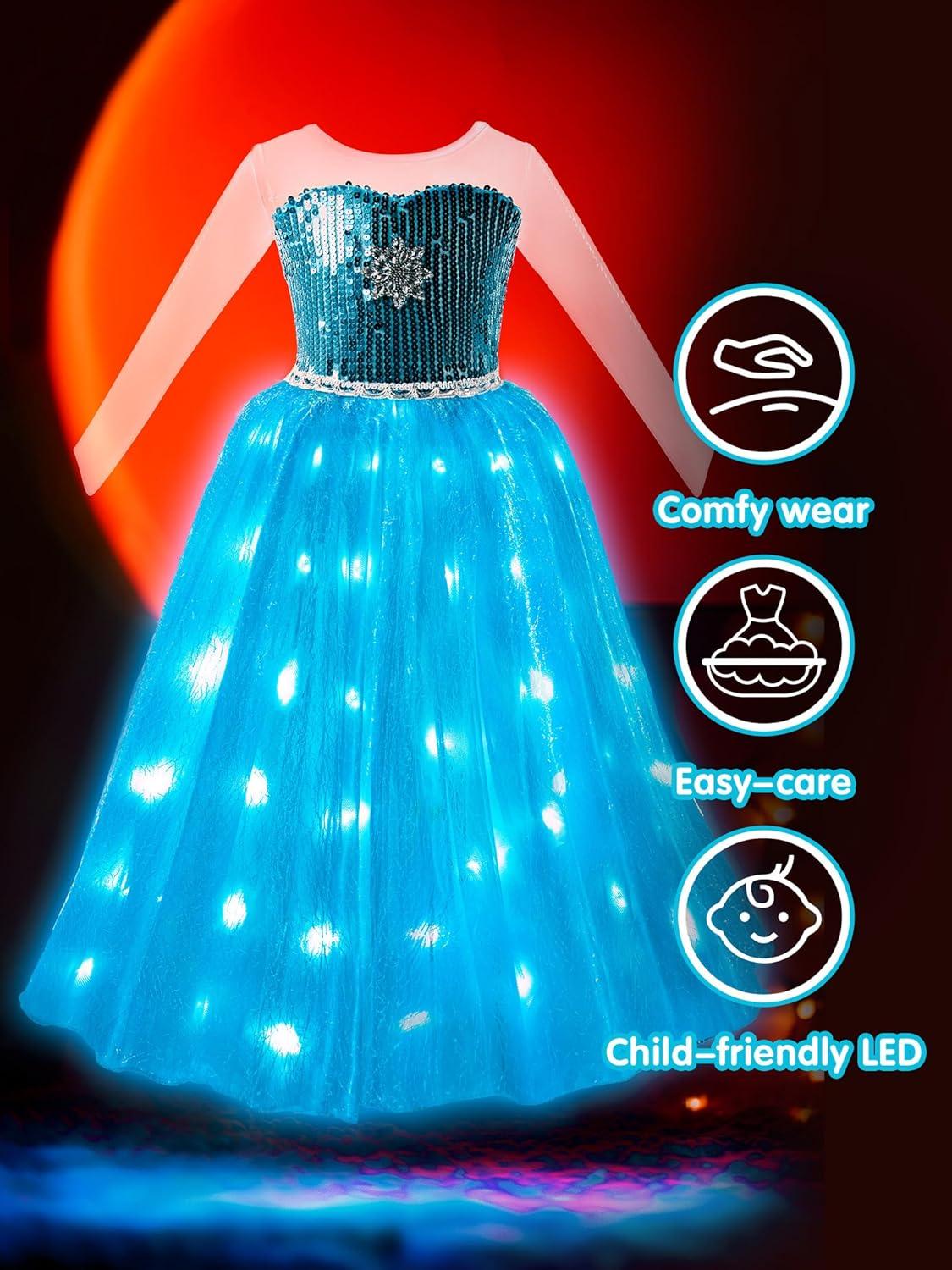 imageLight Up Princess Dress Girls Halloween Costume Christmas Costume Toddler Dressing Up for Bithday Party PurpleBlue